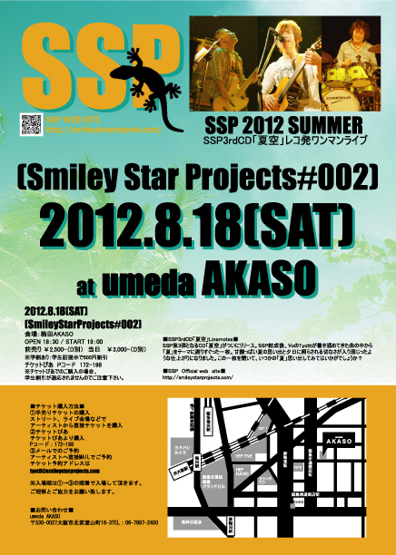 2012.8.18(sat)梅田AKASO、夏のSSPワンマンライブ決定!